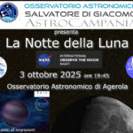 Astrocampania organizza un evento su prenotazione il 3 ottobre 2025 presso l’Osservatorio Astronomico S. Di Giacomo in Agerola. Gli esperti dell’associazione vi guideranno in un viaggio verso la conoscenza della Luna nell’ambito della “International Observe Moon Night IOMN” che si svolge in contemporanea in tutto il mondo, l’evento sarà preceduto da videoproiezioni nell’ambito del progetto […]